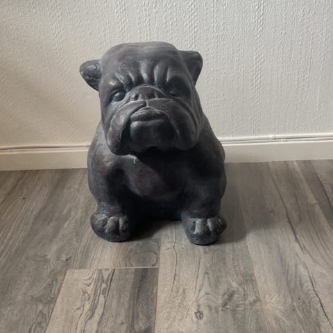 Fin Fyllehund.....brukes kun til pynt pga 1 sprekk...(derfor lagt under noen mangler/ødelagte deler)lengde 23cm...høyde 18cm