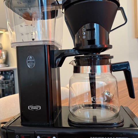 Selger en eldre Moccamaster (1,25 liter).