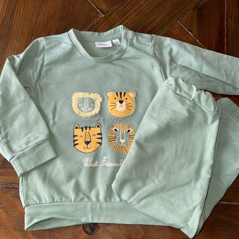 Pent brukt body og bukse fra name it i blått med hunder. Se mine andre annonser mht om jeg skal sende flere plagg samtidig.