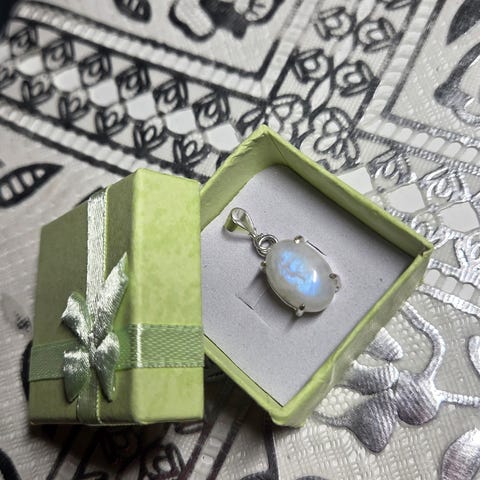 Armbånd med 4mm fasettslipt månestein. Kommet med håndlagde sølv perler og lås. Sølvet er laget av Karen hill folket i nord Thailand, som er kjent for sitt sølvarbeid med bruk av enkle verktøy. Sølvet har et høyere sølv innhold en sterling. Hele 97-98% rent sølv.