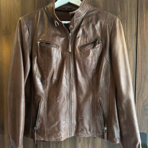 Lekker cognacfarget skinnjakke fra B-young av merket Jazz. Nypris var 3500