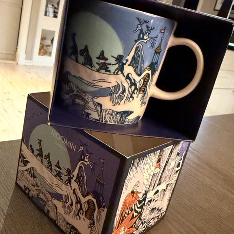 Ny spesialutgave fra ARABIA på Mummi Dagen (Tove Janssons fødselsdag) Denne koppen er produsert i begrenset opplag. Kopp krus. Ny i gaveboks, kjøpt på Glassmagasinet i Oslo