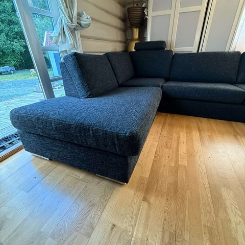 Vi selger vår romslige og behagelige sofa – perfekt for deg som har god plass og ønsker en koselig samlingsplass i stuen.