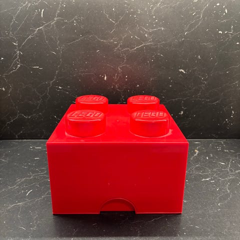 2 stk rød lego oppbevaringsbokser