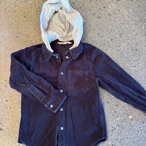 Et hull nederst på baksiden og slitt på ermene, se bildene. Ellers fin.