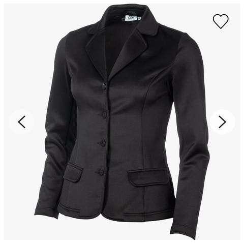 Enkel og stilig konkurransejakke i mykt og elastisk funksjonsmateriale. Selv med en tettsittende passform, gir det elastiske stoffet best mulig bevegelsesfrihet for rytteren. Jakken lukkes med logoknapper i metall. To lommer foran med klaff, og splitt bak.