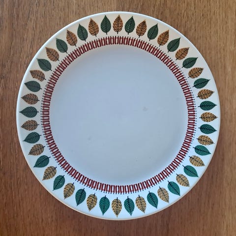 Middagstallerken Zenit fra Egersund. Den har vanlige aldersmerker / bruksmerker og fremstår ikke som ny, men har ingen nagg eller krakeleringer.