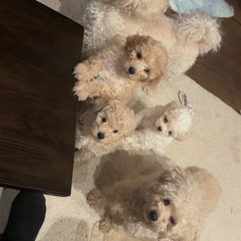 Vi fikk 3 nydelige Yorkiepoo valper 18 Juni. Valpene er leveringsklare 13 august . Forventet vekt er 1,5-2,5kg. Dette er F1 valper.