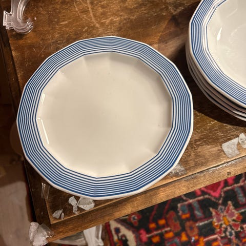 4 pene suppeskåler med blå ringer fra Porsgrund porselen. Diameter 20 cm. Selges 150,- - for alle. Sender post. Har asjetter ute også.