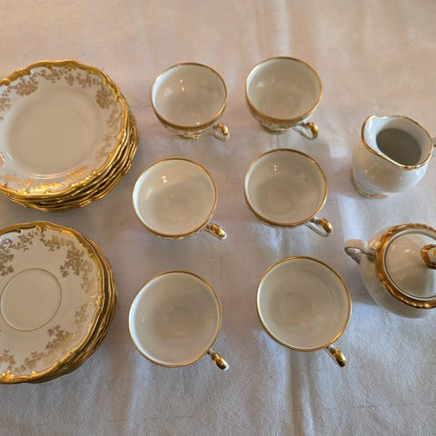 ELSA BAVARIA kaffeservise 8 kopper,8 skåler kr 1000. STAVANGERFLINT KAFFESERVISE 9 asjetter,9 skåler,9 kopper,fløtemugge og sukker krukke.Kr 2500. SELTMANN WEIDEN BAVARIA