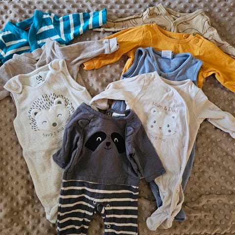 Klesspakke i str. 62 selges. 9 plagg, alt er pent brukt, ingen anmerkninger.