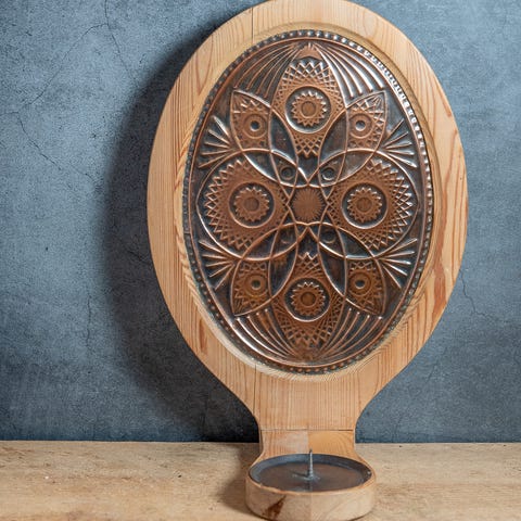 Lysestake til vegg. kobber og tre