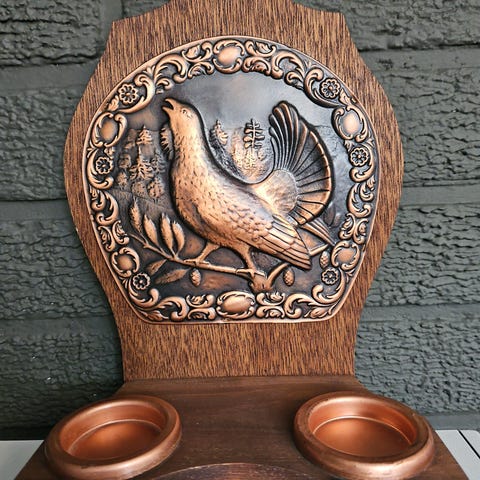 Lysestake til vegg kobber og tre, Hardanger Tresdesign og Hardanger Sylvplett