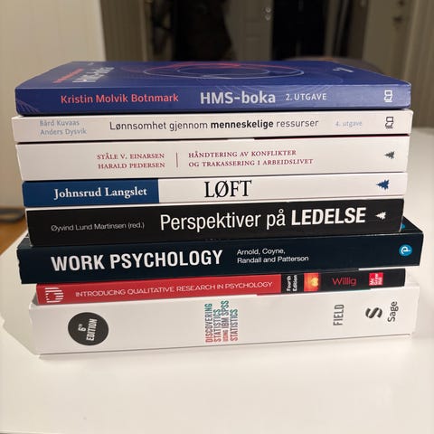 Bøkene er i god stand, noen er ubrukte. Ingen har markeringer. De er brukt til økonomi og administrasjon ved UiT 24/25.