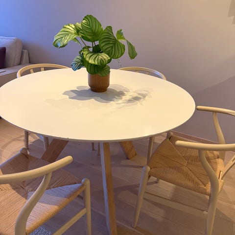 Stolene har noen små bruksmerker der lakken er skrapet bort, se bilder.