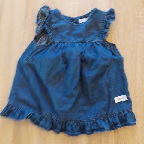 En jumpsuit fra Newbie og en kjole fra Cubus i str 68. Begge er hvite og har fint mønster med blå blomster.