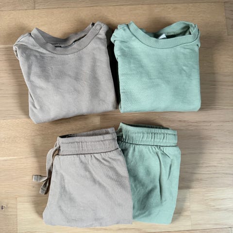 Bluse i lett stoff fra enfant. Kjole i velour fra minymo.