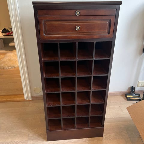 Selger 3 stk. nye og ubrukte/umonterte vinflaskestativ for veggmontering da det ble litt endringer i planene.