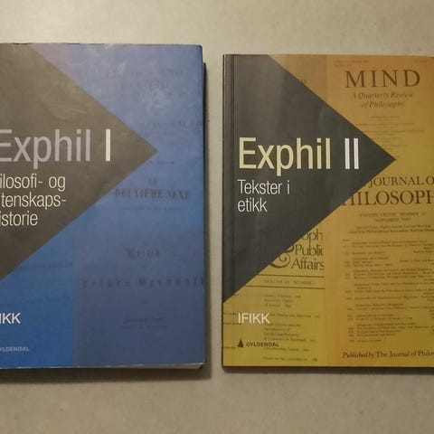 Pakke med "Exphil I: Filosofi og vitenskapshistorie", og "Exphil II: Tekster i etikk". Selges pent brukt.