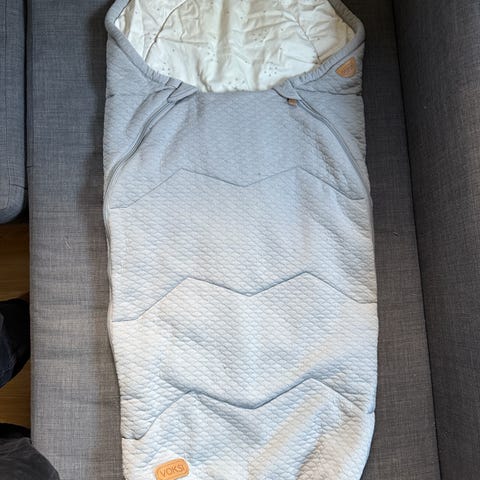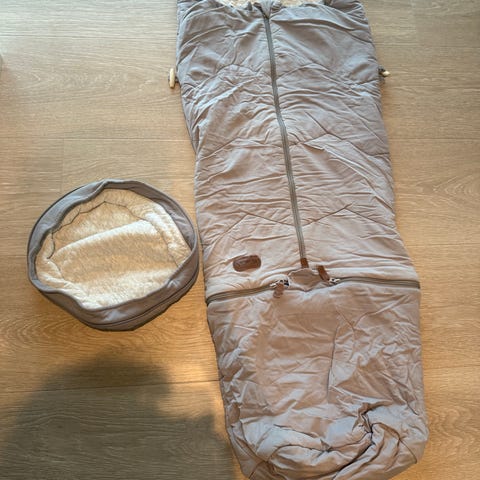 Godt brukt. Solbleket, men mye bruk igjen. Den er nyvasket. Det følger med forlengerdel. Den er ikke brukt og fremstår som ny I forhold til den solbleket posen. Passer fint i barnehagen med andre ord😉