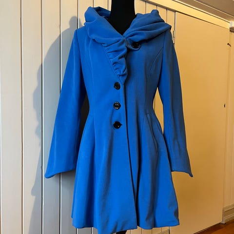 Erich Fend kåpe i 70% Virgin ull og 10% kashmir, foret i 100% viskose. Pent brukt av min mor.