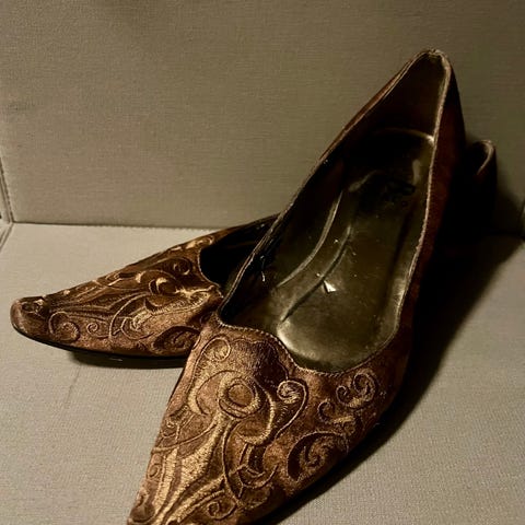 Embroidered black suede vintage heels from Bocage. Small signs of wear but very good vintage condition.