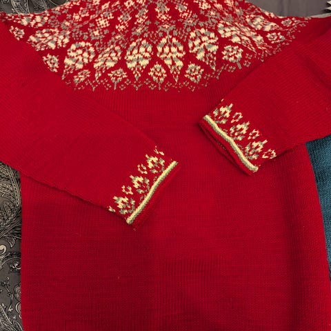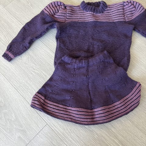 Selger hjemmestrikket cardigan og pannebånd. Bare rbrukt en kveld i bryllup til barn 1 år.