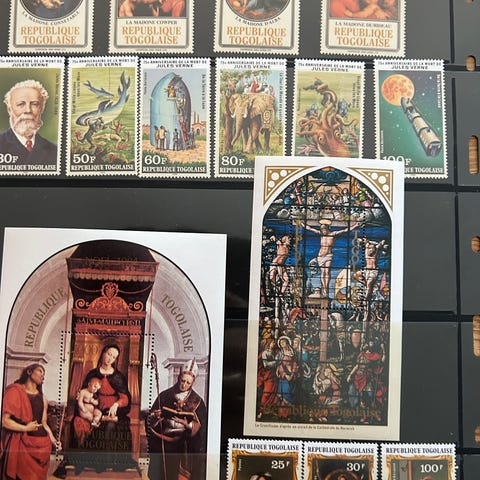 Sett med fire kunstpostkort fra The National Gallery i London, alle med motiver av berømte verk som henger i galleriet. Postkortene er ubrukt og i meget pen stand. Det følger også med en ubrukt postkortramme i papp fra Jan Coleman Frames (London) – perfekt for å vise frem et av kortene.