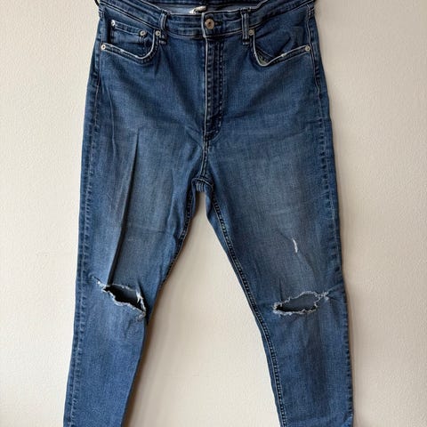 Jeans fra Rag and bone. Modell: Maya high-Rise ankle straight. Blå med noen fabrikkerte hull. Str 27.