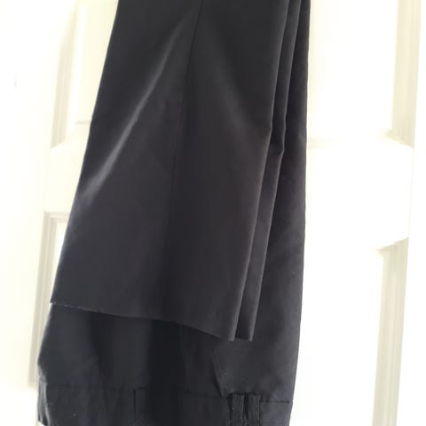 Angitt på H&M sin sider at de er litt små i størrelsen, så vil si de er mer str 46 enn 48. Stretch og litt glatt fint stoff.