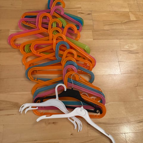 Pent brukte barnekleshengere i hvitlakkert tre. Har 30 stk., 15 kr stk kan evt selges samlet - kr 300 for alle 30.