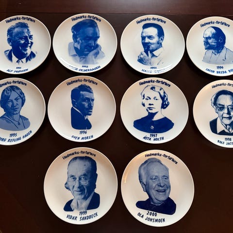 Veggplater fra forskjellige år av forfattere fra Hedmark, med litt historie beskrevet bak.