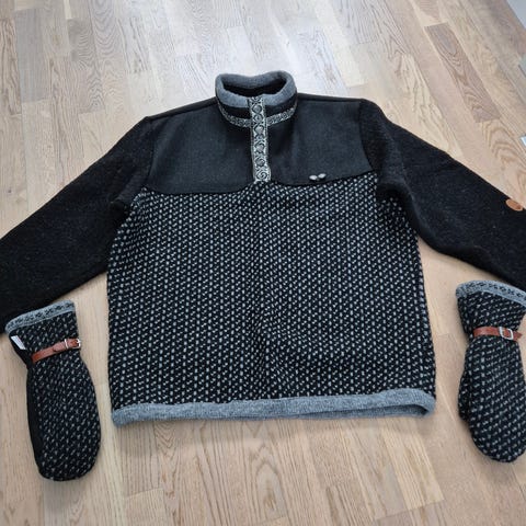 Fin genser m/V hals. Svart og hvit . 30 ull. 70. Akryl. Herre .