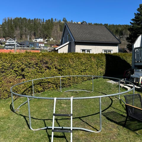 Trampoline er demontert og venter på et nytt eier.
