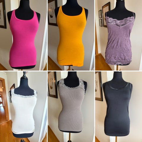 Toppene selges da dem ikke blir brukt. Supre singleter aom kan brukes begge veier avhengig av om du ønsker utringingen på fremsiden eller baksiden. Alle toppene er i størrelse xs.