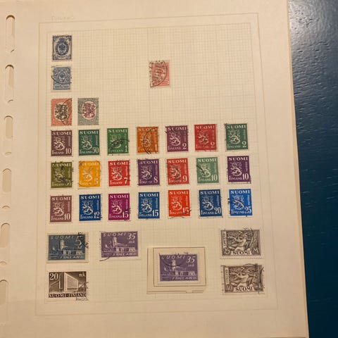 Plansje med Finland diverse merker stemplet selges kr 75.-+porto