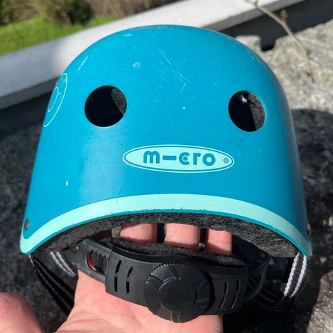Selger en pent brukt Micro-hjelm kjøpt på riktige leker i 2023. Hjelmen er helt fin med noen bruksmerker. Veiledende nypris er 629 kr på Sprell.
