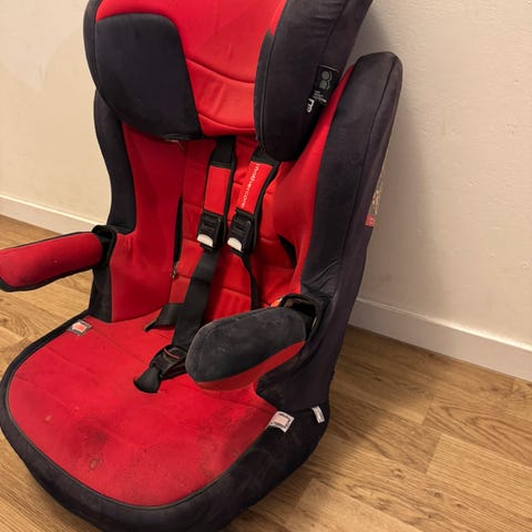 Fin barnestol, men det er spor av bruk. Jeg tror man kan rengjøre den, og så blir alt bra.