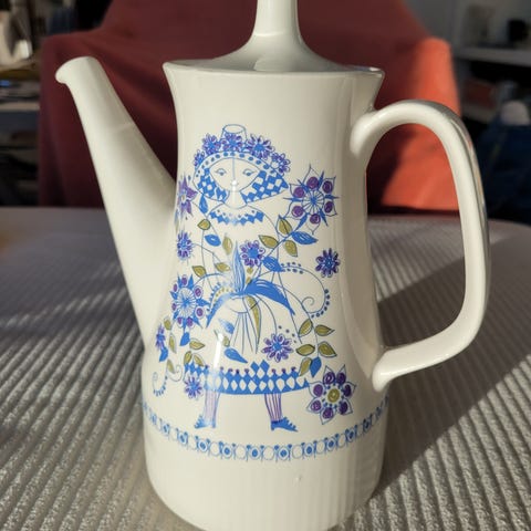 Kaffekanne Lotte fra Figgjo, lokk er annet mønster på, så det er uorginalt