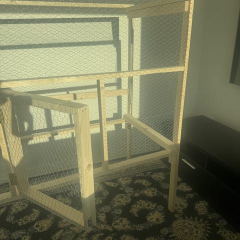Stor bur med bord og hjuler