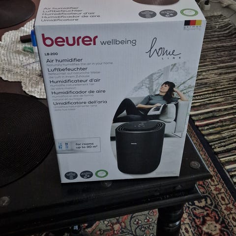 Luftfukteren er god som ny og med mange justeringsmuligheter. Kun prøvd - ikke brukt. Selges da den ble litt for avansert for bestemor.