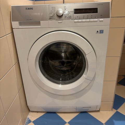 Maskinen er 10 år gammel, og fungerer utmerket. Har endret på bad slik at vask og tørk får plass der. Gir derfor denne bort mot henting.