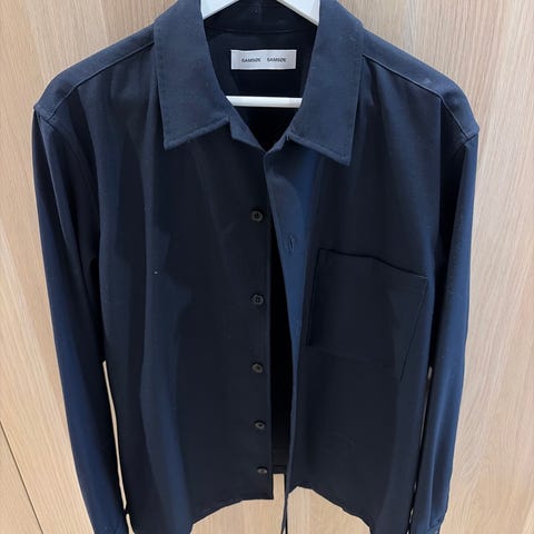 Samsøe Samsøe skjorte i størrelse XL.Kan også passe L. Fargen er blå, og skjorten har en klassisk design. Den egner seg godt til både hverdagsbruk og formelle anledninger. Den er helt ny men lappen har blitt tatt av men er aldri blitt brukt.