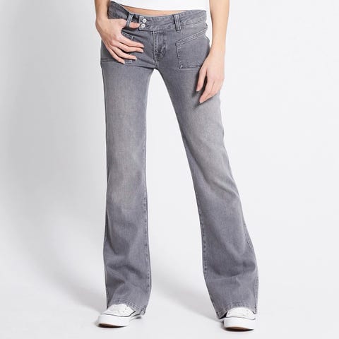Grå low waist jeans fra Only i passe vid modell. Størrelse xxs/32, men den vil også kunne passe en xs tross at det ikke er strech i materialet da den har viet seg bittelitt etter de få gangene jeg har brukt den. Utrolig stilig jeans for deg som liker low waist kombinert med litt vidde på jeans!
