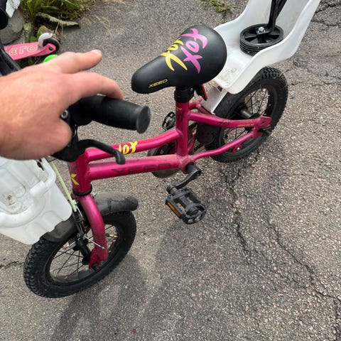 Jentungen har vokst fra sykkelen.