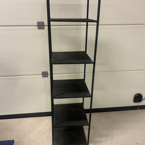 Skrå trappehylle i tungt solid metall, som ser spray lakkert (malt) ut fra fabrikken.