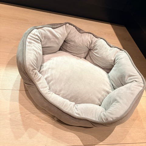 Kjøpte feil størrelse🫣 så denne er helt ny og ingen dyr har ligget i den. Fra kant til kant er den 45 cm, liggedelen er 35 sm. Den puffes litt og blir en myk seng med kant til å hvile hode på.