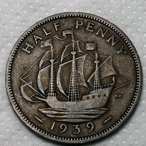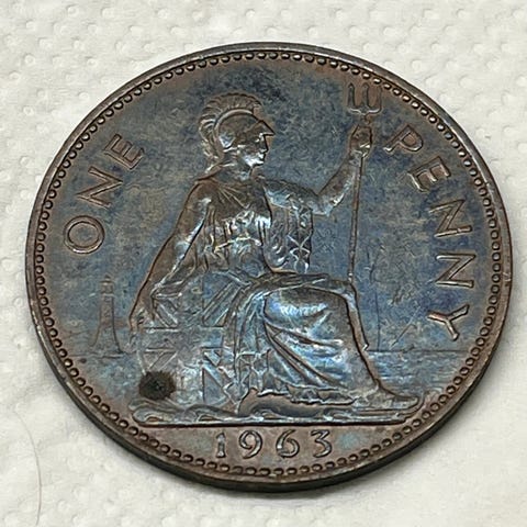 En fantastisk 1/2 Penny bronsemynt fra Storbritannia fra 1957 i Choice Uncirculated ,tilstand. Dette utsøkte mynten har en betagende profil av dronning Elizabeth II på forsiden, omkranset av elegant skrift, og et majestetisk skip under fulle seil på baksiden, datert 1957. Mynten viser frem fantastiske toner med rike, iriserende nyanser av lilla, gull og bronse, noe som bidrar til dens tidløse skjønnhet og samleverdi. Et sant mesterverk for enhver numismatisk entusiast – ikke gå glipp av sjansen til å eie denne juvelen!
