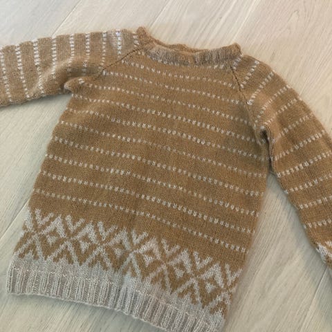Jeg strikket den selv, den passer best i størrelsene xs og s