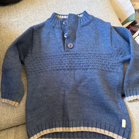 Kjempe søt strikket genser fint brukt fra next baby i strl 86 selges for kroner 130.